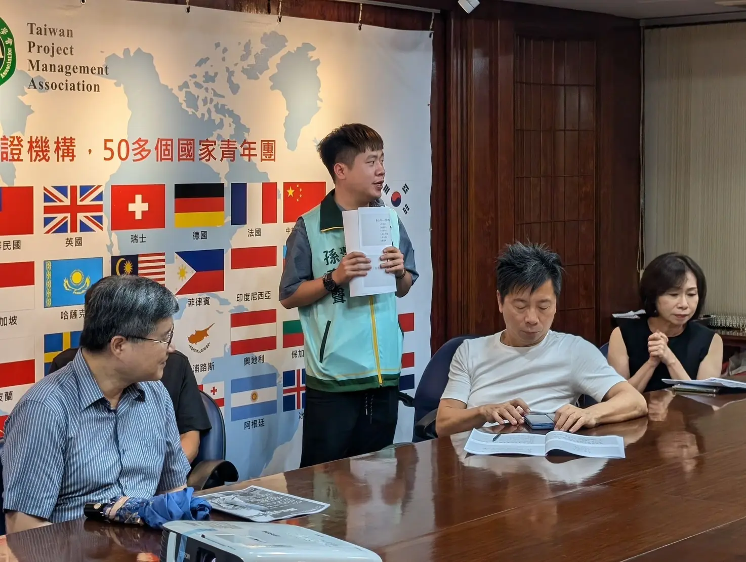 中醫講座在台灣專案管理學會舉行,立委許智傑、林岱樺助理、萬花筒廣告國際事業翁文堂負責人、妤果公司王宗慶總經理、碩理法律事務所李慶榮律師、媽祖聯合會台灣總會理監事以及各委員會召集人等出席。