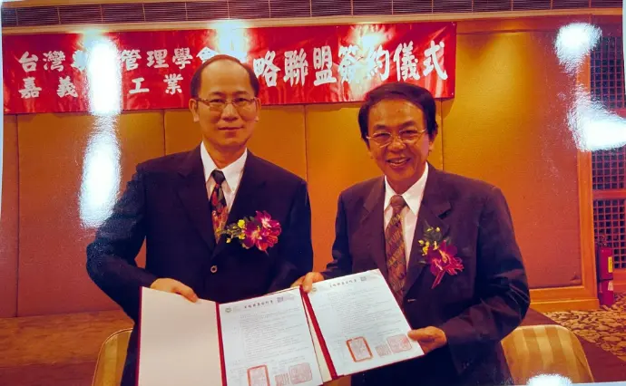 TPMA 理事長李仟萬 先生 與嘉義市工業會 陳昭五理事長共同完成 第 5 個 國際認證暨青年團營運中心簽約儀式